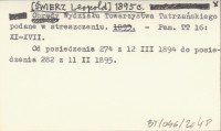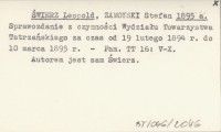 [ŚWIERZ Leopold] 1895 c Obrady Wydziału Towarzystwa Tatrzańskiego podane w streszczeniu.