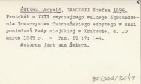 ŚWIERZ Leopold ZAMOYSKI, Stefan. ; 1896 Protokół z XXII zwyczajnego walnego Zgromadzenia Towarzystwa Tatrzańskiego odbytego w sali posiedzeń Rady miejskiej w Krakowie, d. 10 marca 1895 r.