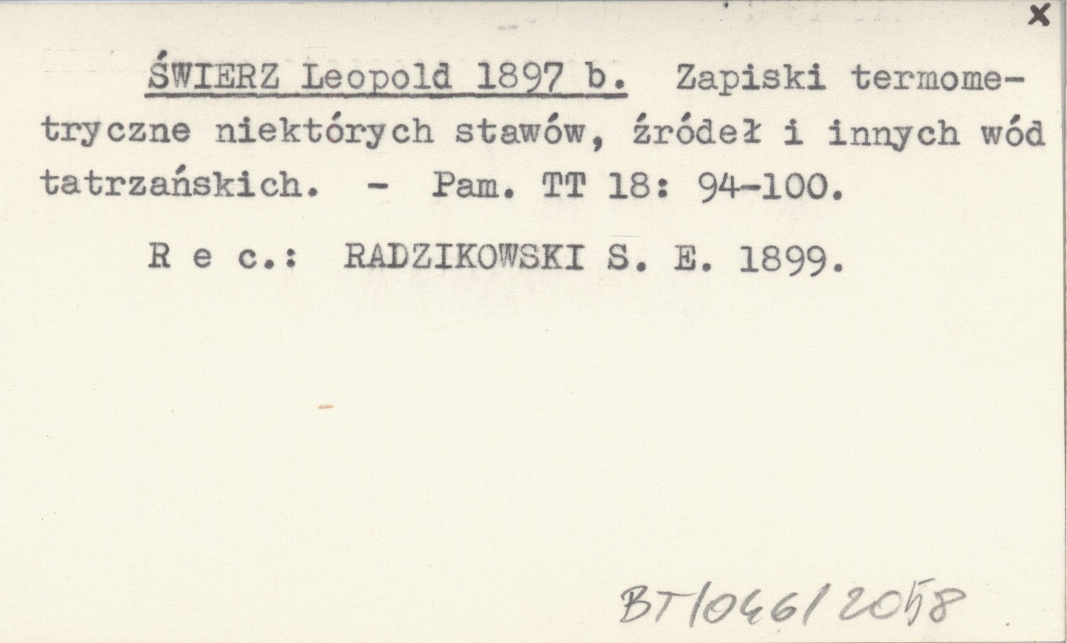Pamiętnik Towarzystwa Tatrzańskiego, 18: 94-100. REC: RADZIKOWSKI S. E. 1899