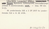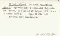 ŚWIERZ Leopold KASPEREK, Franciszek. ; 1899 b Sprawozdanie z czynności Wydziału Tow. Tatrz. za czas od 28 lutego 1898 r. do 12 marca 1899 r.