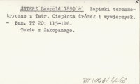 ŚWIERZ Leopold 1899 c Zapiski termometryczne z Tatr. Ciepłota źródeł i wywierzysk.