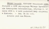 ŚWIERZ Leopold KASPEREK, Franciszek. ; 1899 a Protokół z nadzwyczajnego Walnego Zgromadzenia Towarzystwa Tatrzańskiego, odbytego d. 3 kwietnia 1898 r. w sali posiedzeń Rady miejskiej w Krakowie.