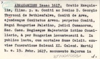 ABRAHAMIDES Isaac 1617 Oratio Exequialis, Illmo. p. m. Comiti ac Domino D. Georgio Thvrzoni de Bethlemfalwa, Comiti de Arwa, ejusdemque Comitatus Arwen. perpetuo Comiti, Regni Hungariae Palatino, judici Cumanorum, Sac. Caes. Regiaeque Majestatis intimo Consiliario, & per Hungariam Locumtenenti &. In viae funeratione Solenni XI. Calend. Martij h. e. 19. Febr. 1617. monumento Majorum in templo Bytschensi conderentur [...].