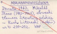 ABRAHAMOWICZÓWNA Danuta 1963 Mikuláš Stano (1903-1962), słowacki tłumacz literatury polskiej.