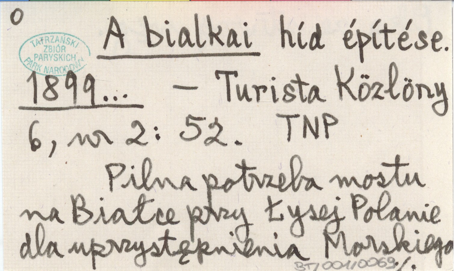 Turista Közlöny, 6, nr 2: 52. Pilna potrzeba mostu na Białce przy Łysej Polanie dla uprzystępnienia Morskiego Oka ze strony węg.