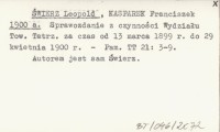 ŚWIERZ Leopold KASPEREK, Franciszek. ; 1900 a Sprawozdanie z czynności Wydziału Tow. Tatrz. za czas od 13 marca 1899 r. do 29 kwietnia 1900 r.