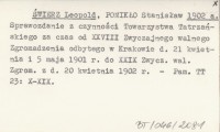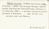 ŚWIERZ Leopold PONIKŁO, Stanisław. ; 1901 Protokół z XXVII zwyczajnego walnego Zgromadzenia Towarzystwa Tatrzańskiego odbytego d. 29 kwietnia 1900 r. Muzeum techniczno-przemysłowem w Krakowie.