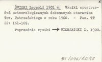 [ŚWIERZ Leopold] 1900 c Obrady Wydziału Towarzystwa Tatrzańskiego podane w streszczeniu.