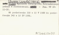 [ŚWIERZ Leopold] 1901 d Obrady Wydziału Towarzystwa Tatrzańskiego podane w streszczeniu.