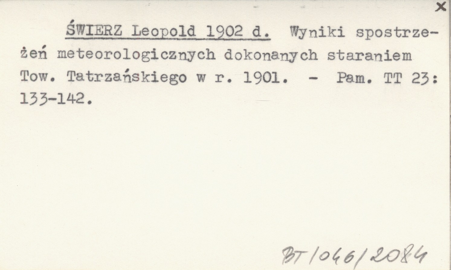 ŚWIERZ Leopold 1902 d Wyniki spostrzeżeń meteorologicznych dokonanych staraniem Tow. Tatrzańskiego w r. 1901.
