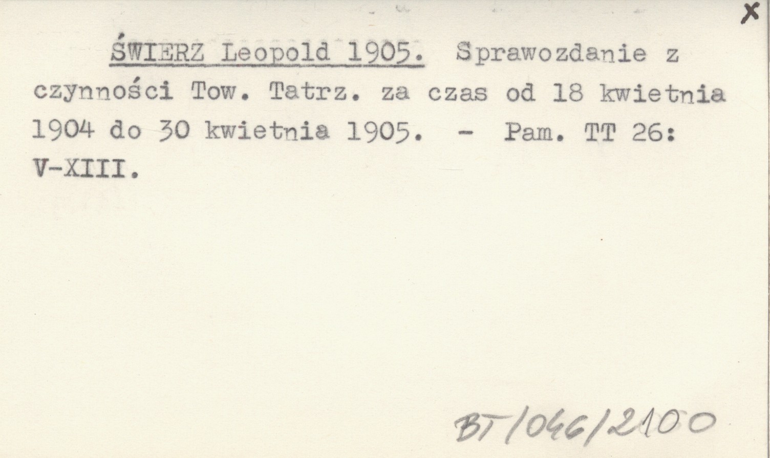 ŚWIERZ Leopold 1905 Sprawozdanie z czynności Tow. Tatrz. za czas od 18 kwietnia 1904 do 30 kwietnia 1905.