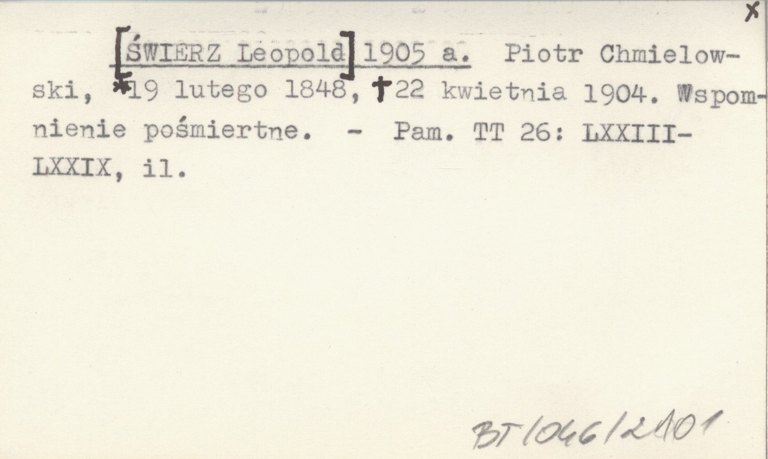 [ŚWIERZ Leopold] 1905 a Piotr Chmielowski, *19 lutego 1848, +22kwietnia 1904. Wspomnienie pośmiertne.