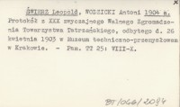 ŚWIERZ Leopold WODZICKI, Antoni. ; 1904 a Protokół z XXX zwyczajnego Walnego Zgromadzenia Towarzystwa Tatrzańskiego, odbytego d. 26 kwietnia 1903 w Muzeum techniczno-przemysłowem w Krakowie.