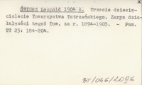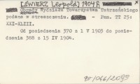 [ŚWIERZ Leopold] 1904 f Obrady Wydziału Towarzystwa Tatrzańskiego podane w streszczeniu.