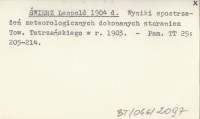 ŚWIERZ Leopold 1904 d Wyniki spostrzeżeń meteorologicznych dokonanych staraniem Tow. Tatrzańskiego w r. 1903.