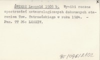 ŚWIERZ Leopold 1905 b Wyniki roczne spostrzeżeń meteorologicznych dokonanych staraniem Tow. Tatrzańskiego w roku 1904.