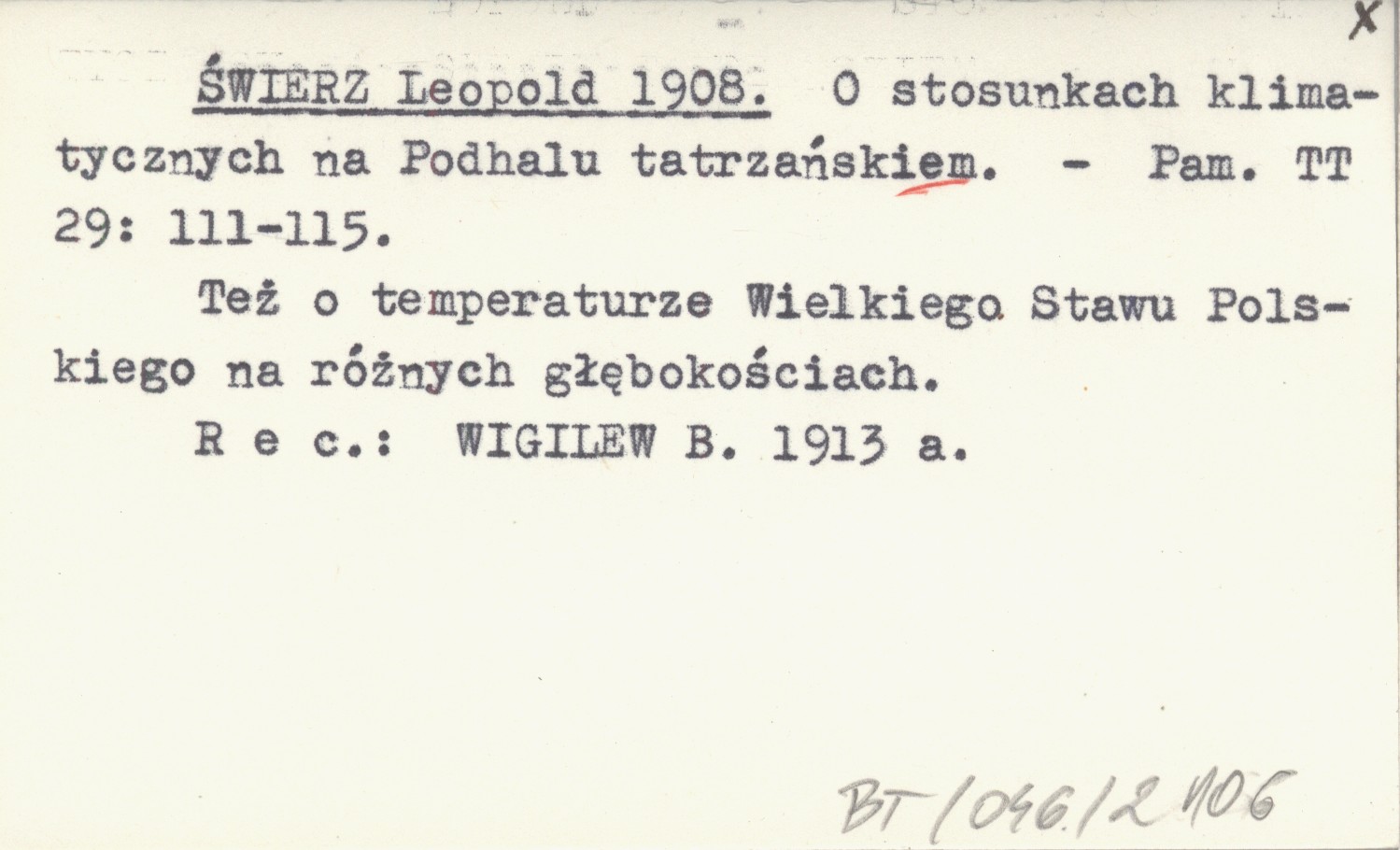 Pamiętnik Towarzystwa Tatrzańskiego, 29: 111-115. Też o temperaturze Wielkiego Stawu Polskiego na różnych głębokościach. REC: WIGILEW B. 1913 a
