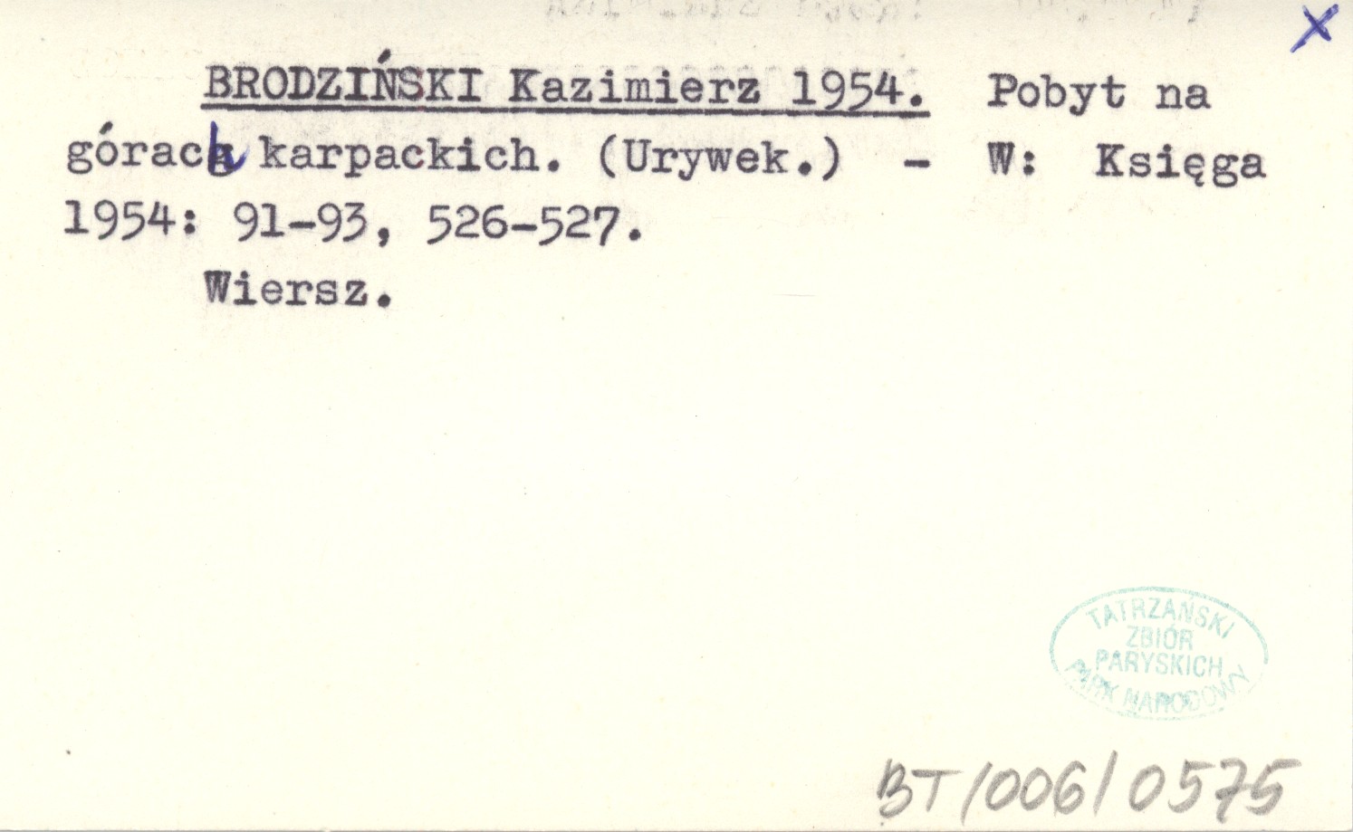 BRODZIŃSKI Kazimierz 1954 Pobyt na górach karpackich. (Urywek.)