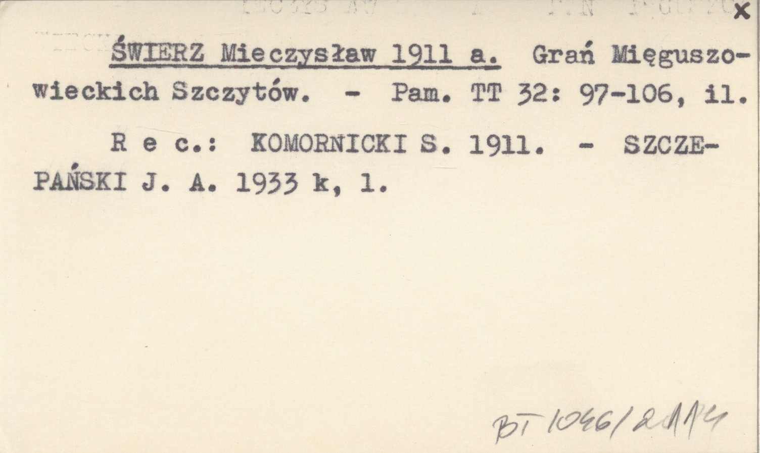 Pamiętnik Towarzystwa Tatrzańskiego, 32: 97-106, il. REC: KOMORNICKI S. 1911 ; SZCZEPAŃSKI J. A. 1933 k, l ;
