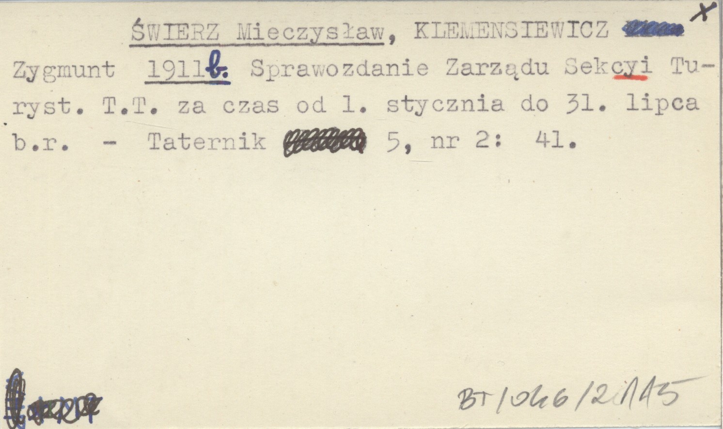 ŚWIERZ Mieczysław KLEMENSIEWICZ, Zygmunt. ; 1911 b Sprawozdanie Zarządu Sekcyi Turyst. T.T. za czas od 1. stycznia do 31. lipca b.r.