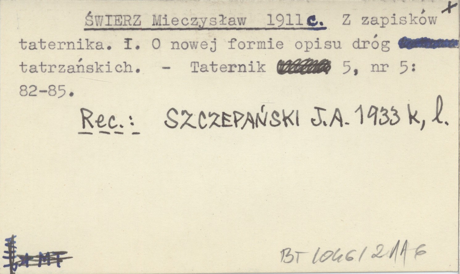 Taternik, 5, nr 5: 82-85. REC: SZCZEPAŃSKI J. A. 1933 k, l