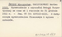 ŚWIERZ Mieczysław SMOLUCHOWSKI, Marian. ; 1912 Sprawozdanie z czynności Sekcyi Turystycznej za czas od 1 stycznia do 31 grudnia 1911 r.