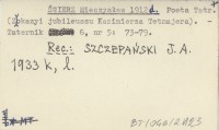 ŚWIERZ Mieczysław 1912 d Poeta Tatr. (Z okazyi jubileuszu Kazimierza Tetmajera).