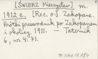 m. [ŚWIERZ Mieczysław] 1912 e [Rec. o:] Zakopane. Krótki przewodnik do Zakopanem i okolicy. 1911.