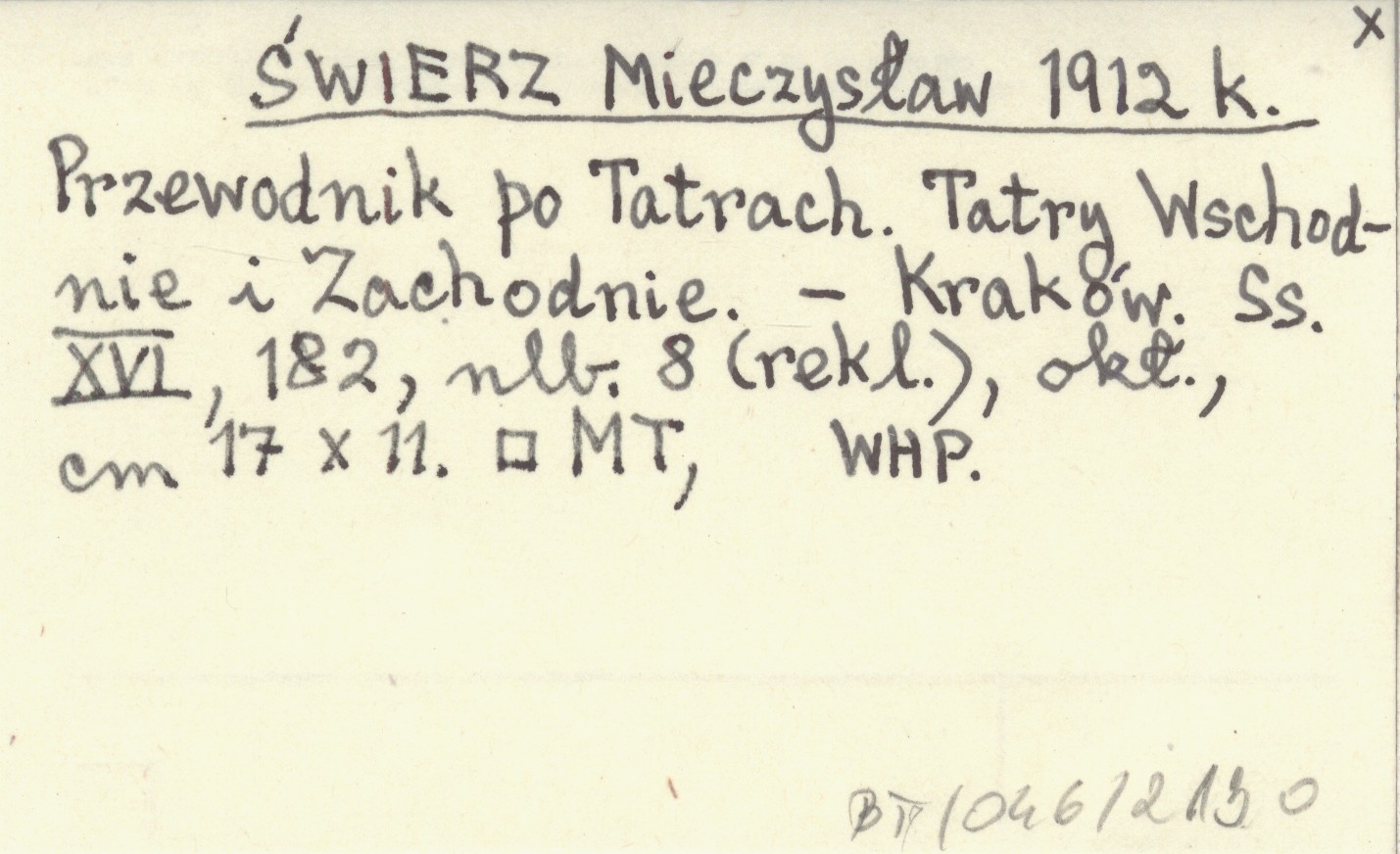 ŚWIERZ Mieczysław 1912 k Przewodnik po Tatrach. Tatry Wschodnie i Zachodnie.
