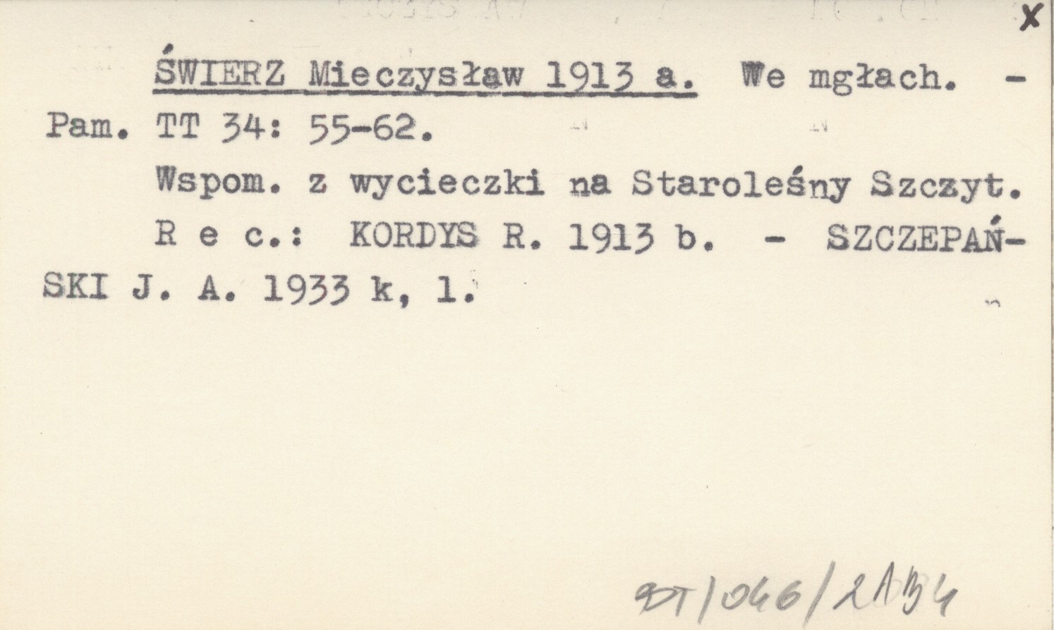 Pamiętnik Towarzystwa Tatrzańskiego, 34: 55-62. Wspomnienie z wycieczki na Staroleśny Szczyt. REC: KORDYS R. 1913 b ; SZCZEPAŃSKI J. A. 1933 k, l ;