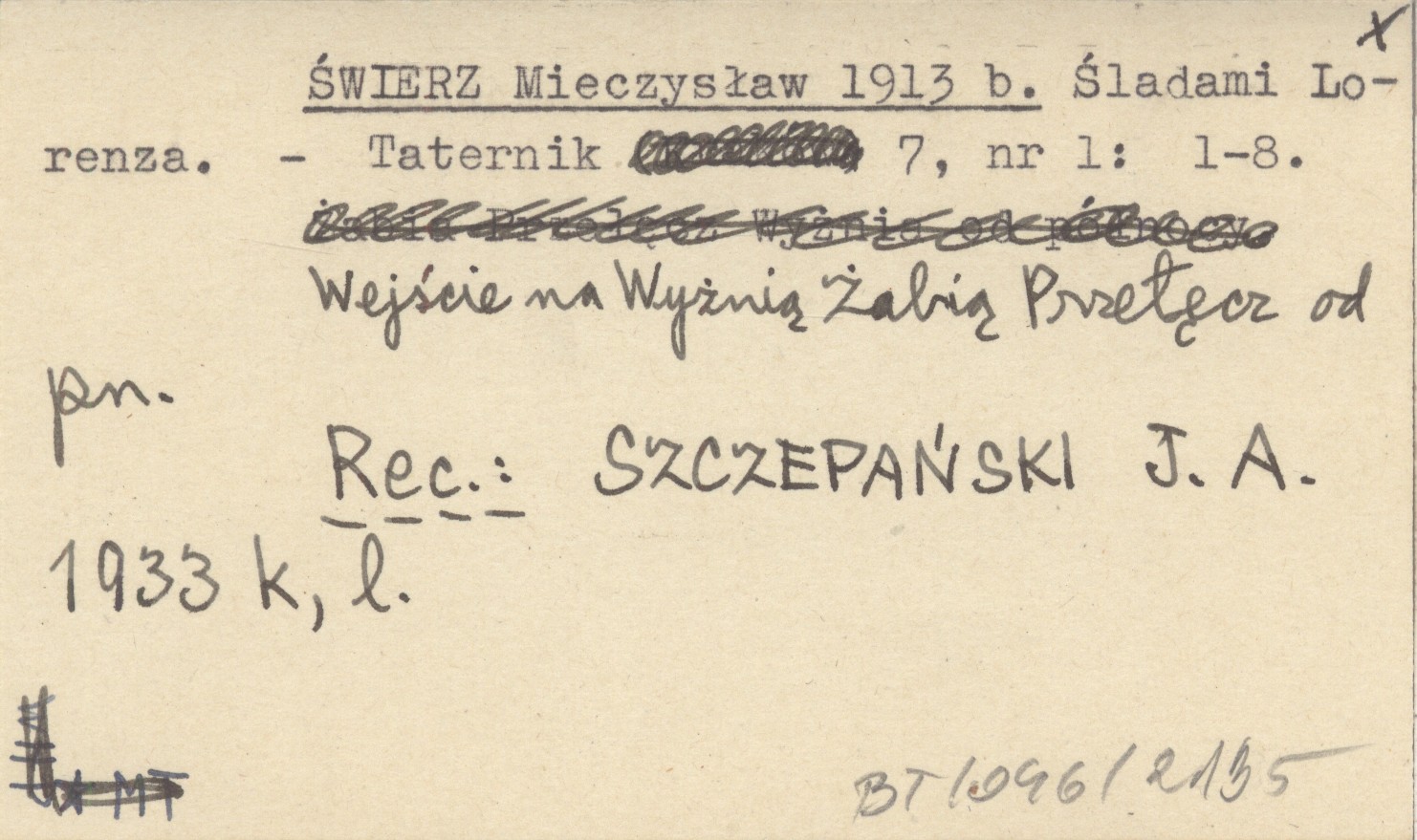 Taternik, 7, nr 1: 1-8. Wejście na Wyżnią Żabią Przełęcz od pn. REC: SZCZEPAŃSKI J. A. 1933 k, l