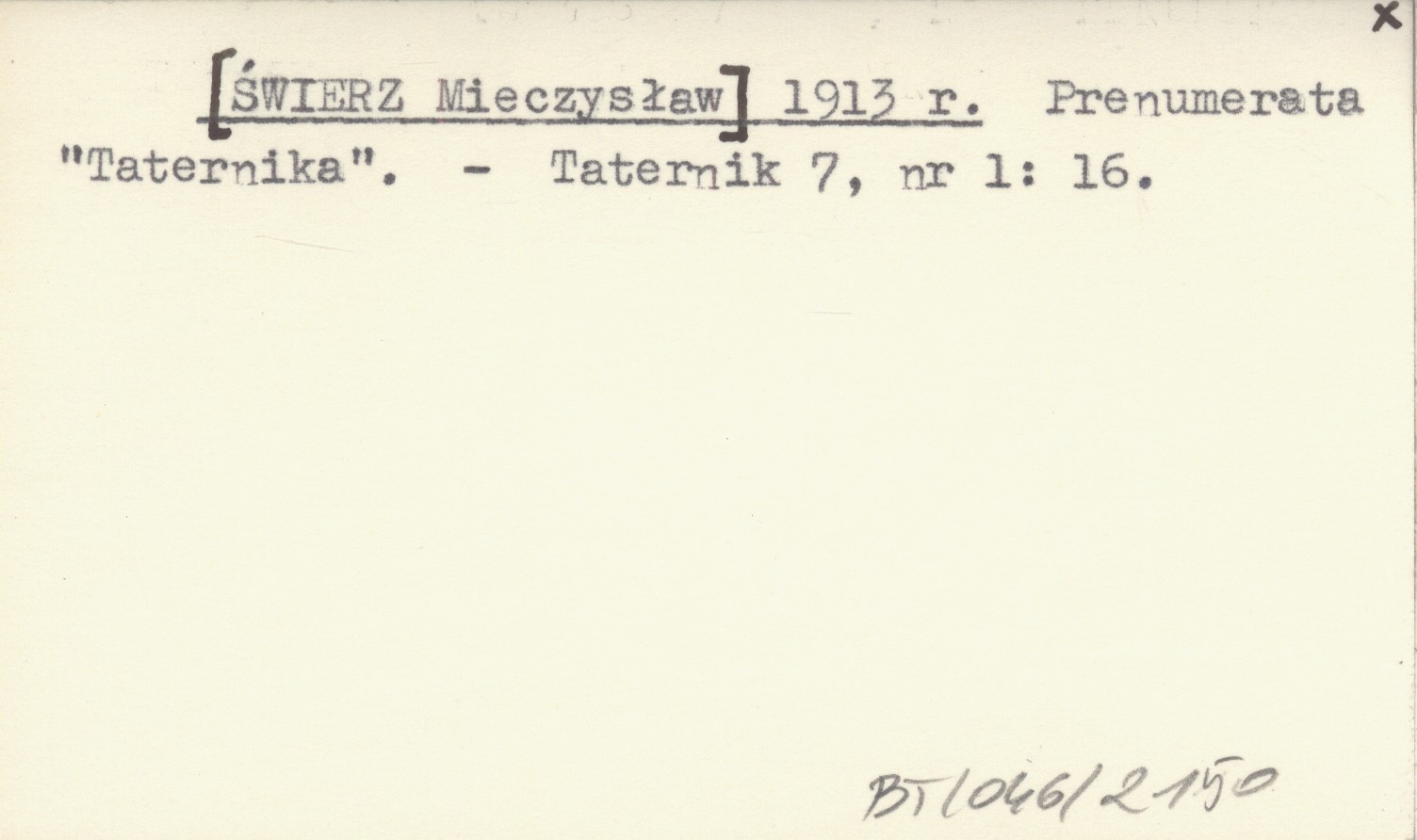 [ŚWIERZ Mieczysław] 1913 r Prenumerata "Taternika".