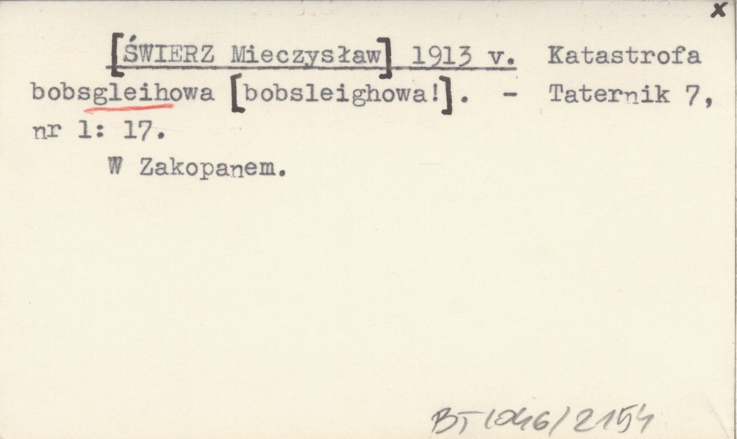 [ŚWIERZ Mieczysław] 1913 v Katastrofa bobsgleihowa [bobsleighowa!].