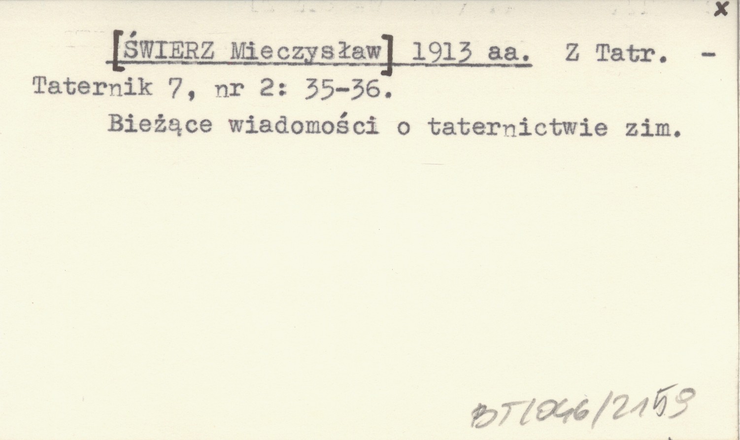 Taternik, 7, nr 2: 35-36. Bieżące wiadomości o taternictwie zimowym.