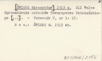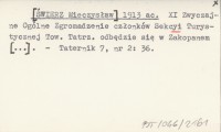 [ŚWIERZ Mieczysław] 1913 ac XI Zwyczajne Ogólne Zgromadzenie członków Sekcyi Turystycznej Tow. Tatrz. odbędzie się w Zakopanem [...].