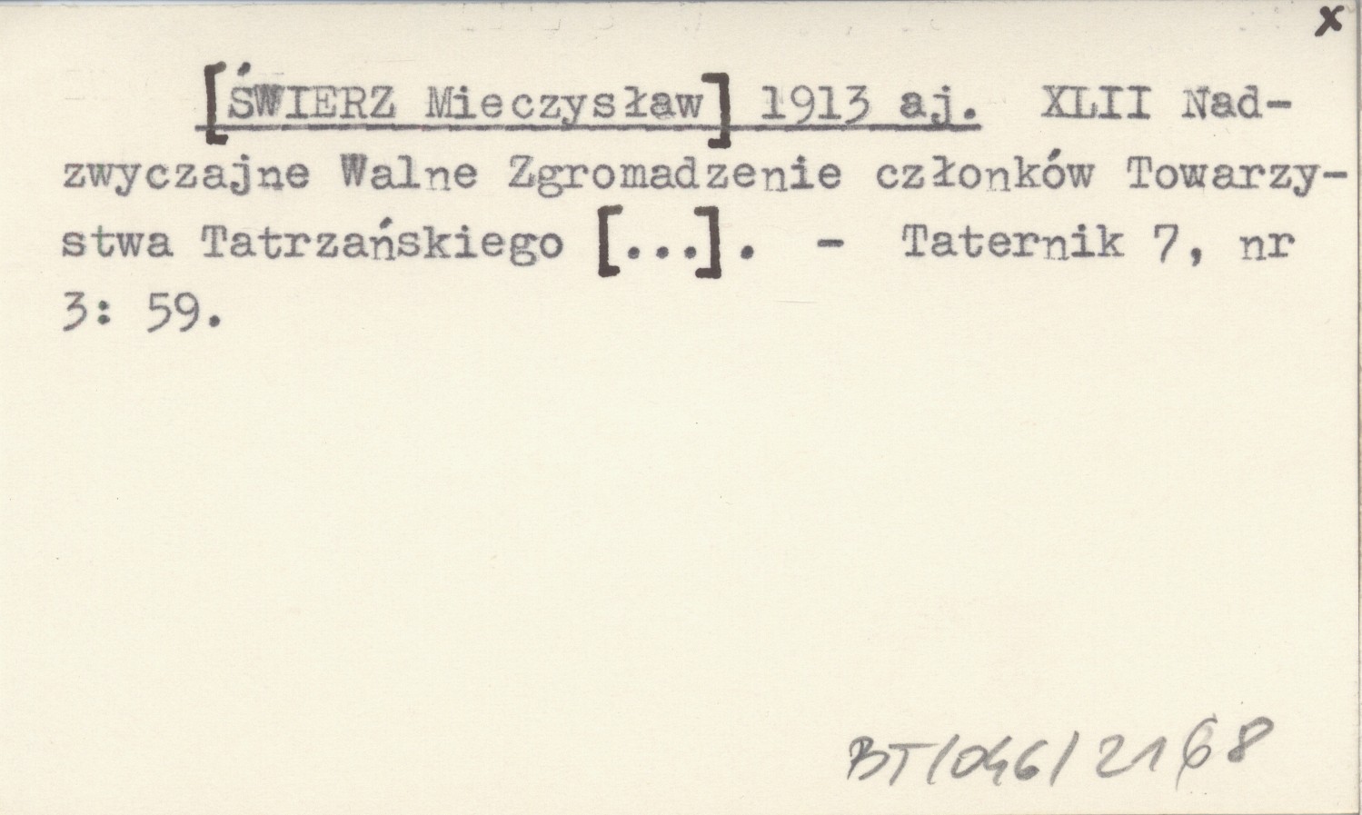 [ŚWIERZ Mieczysław] 1913 aj XLII Nadzwyczajne Walne Zgromadzenie członków Towarzystwa Tatrzańskiego [...].