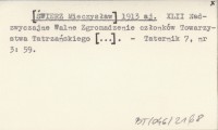[¦WIERZ Mieczys³aw] 1913 aj XLII Nadzwyczajne Walne Zgromadzenie cz³onków Towarzystwa Tatrzañskiego [...].
