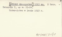 [¦WIERZ Mieczys³aw] 1913 am Z Tatr.