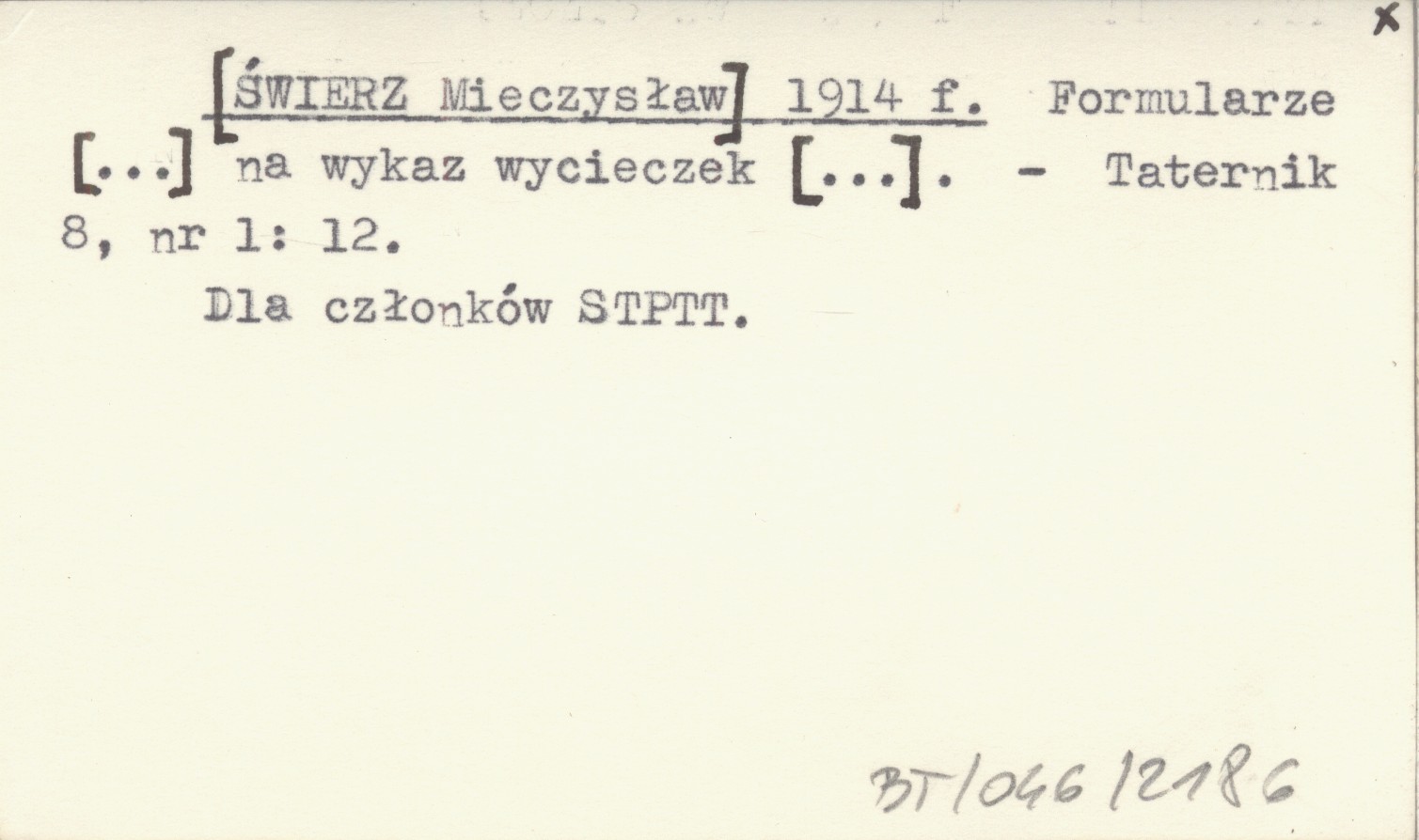 Taternik, 8, nr 1: 12. Dla członków STPTT.