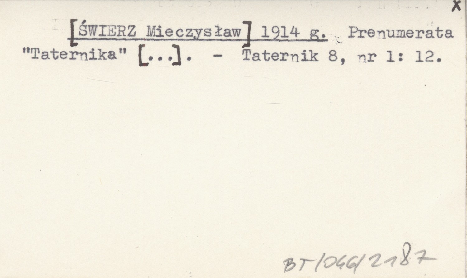 [ŚWIERZ Mieczysław] 1914 g Prenumerata "Taternika" [...].