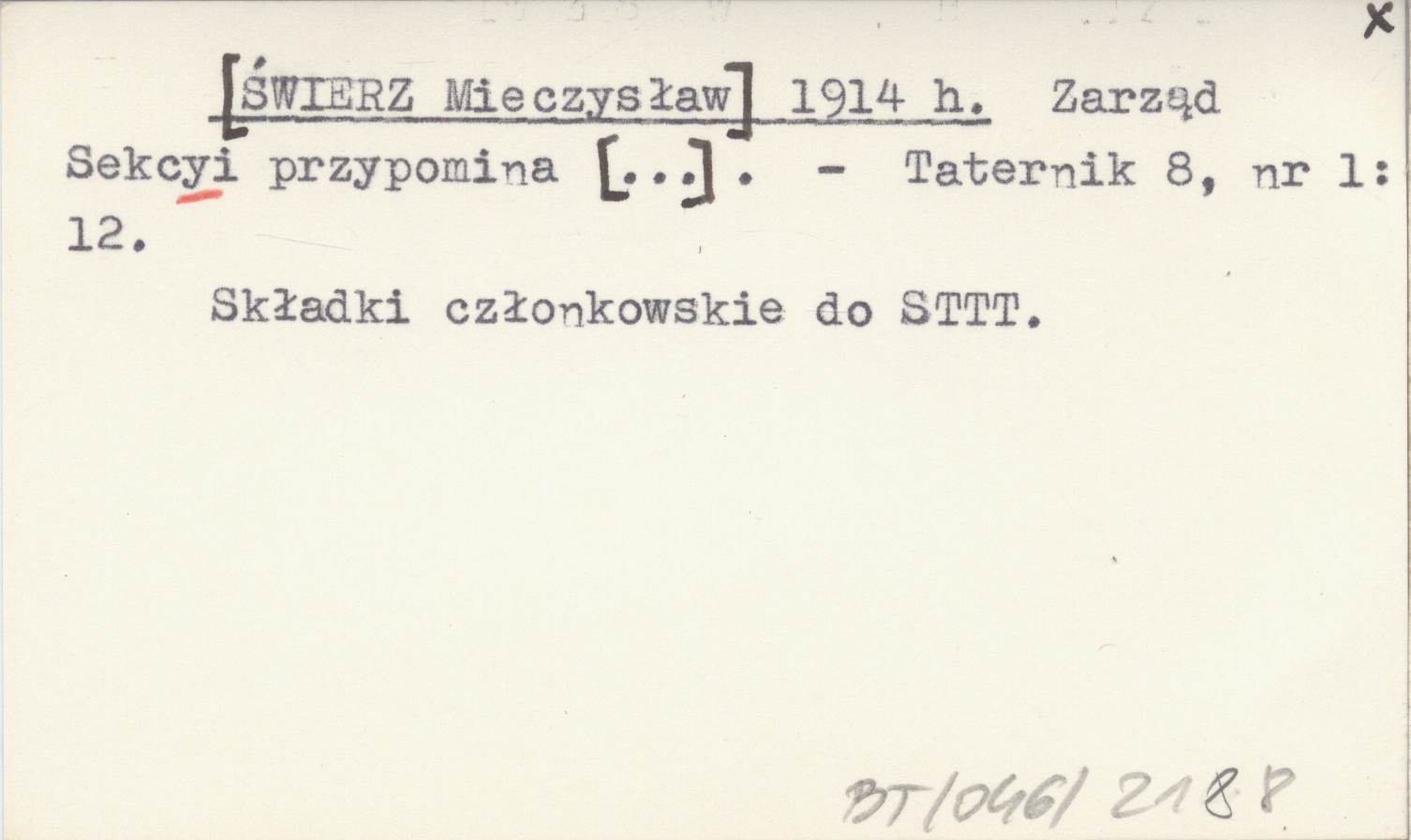[ŚWIERZ Mieczysław] 1914 h Zarząd Sekcyi przypomina [...].