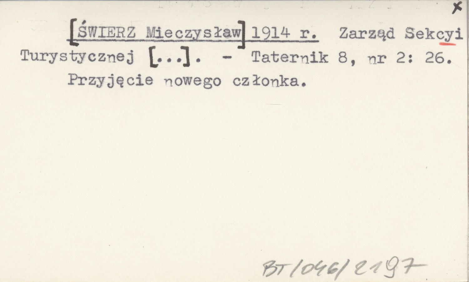 [ŚWIERZ Mieczysław] 1914 r Zarząd Sekcyi Turystycznej [...].