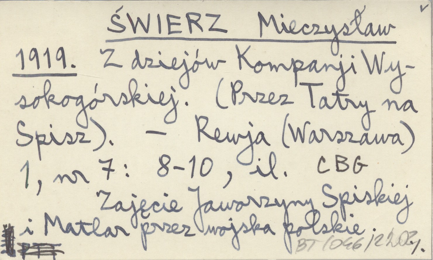 ŚWIERZ Mieczysław 1919 Z dziejów Kompanji Wysokogórskiej. (Przez Tatry na Spisz).