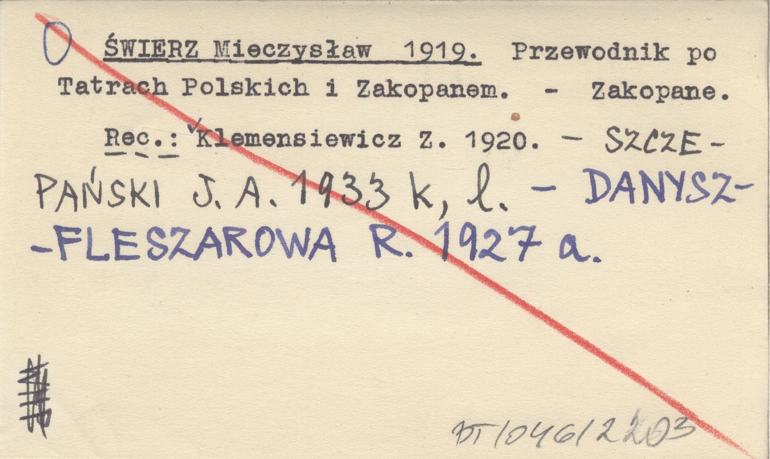 Zakopane , REC: KLEMENSIEWICZ Z. 1920 ; SZCZEPAŃSKI J. A. k, l ; DANYSZ-FLESZAROWA R. 1927 a ;