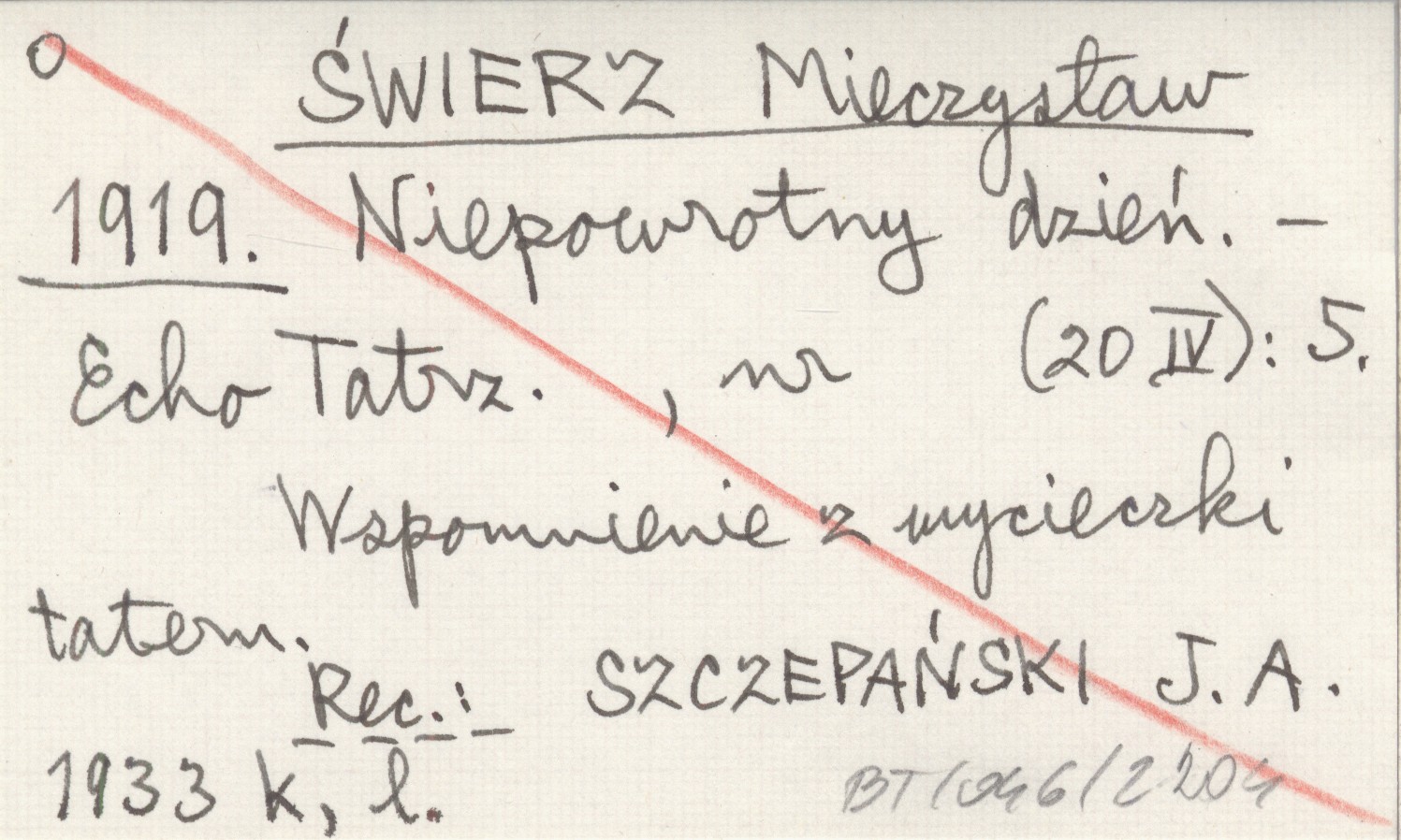 Echo Tatrzańskie, Nr (20 IV): 5. Wspomnienie z wycieczki taternickiej. REC: SZCZEPAŃSKI J. A. 1933 k, l