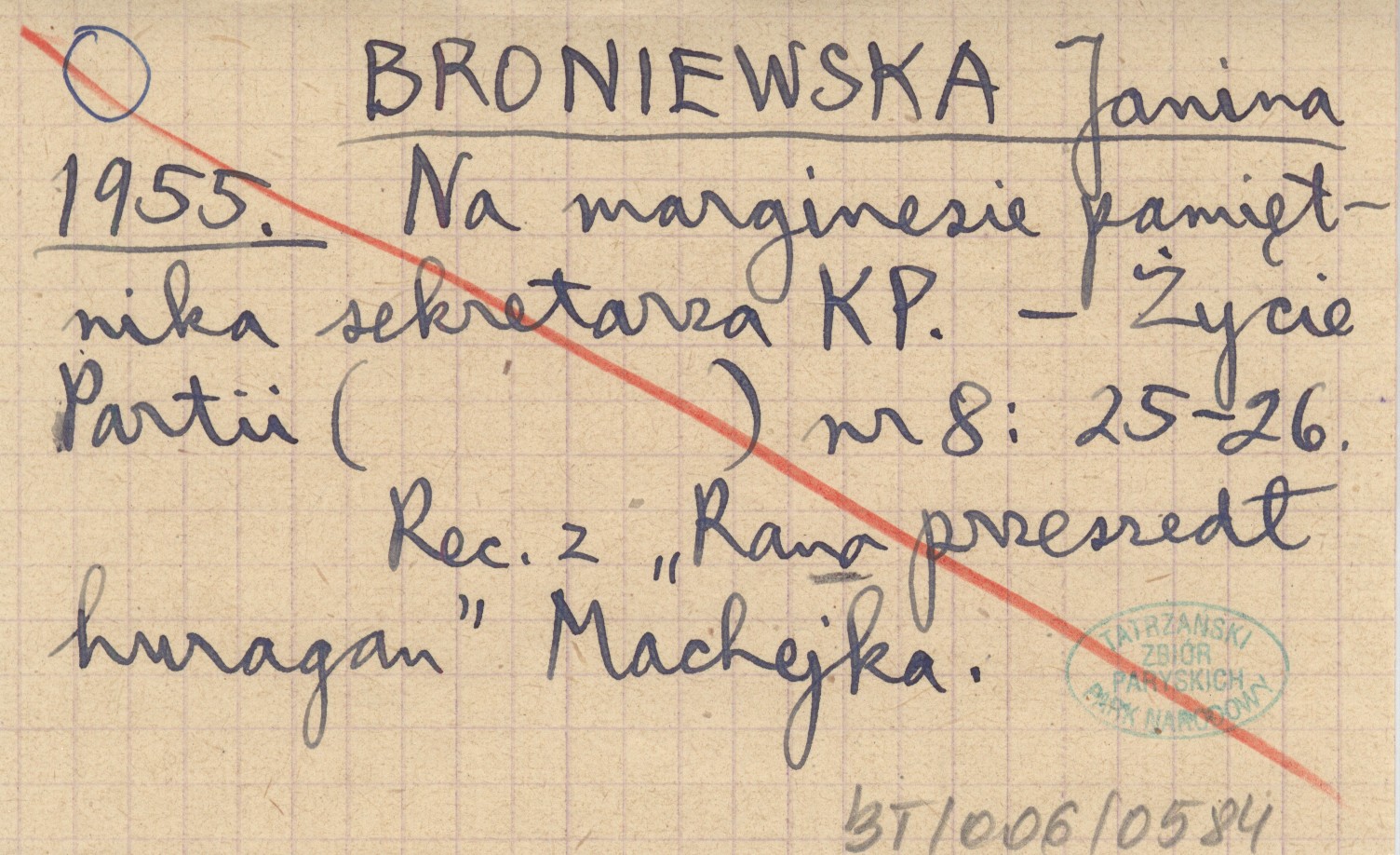 BRONIEWSKA Janina 1955 Na marginesie pamiętnika sekretarza KP.