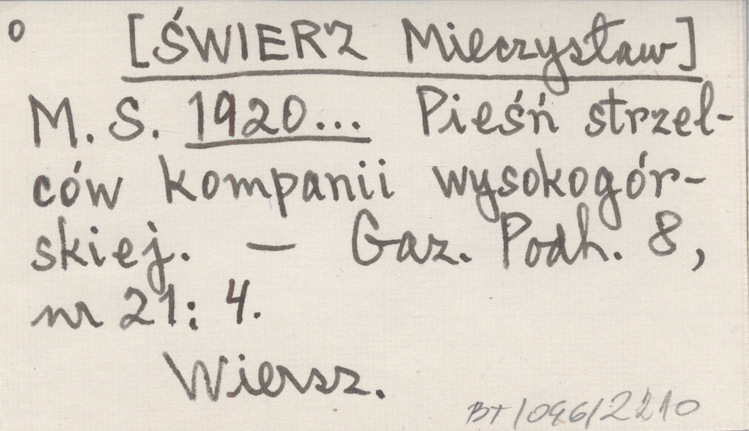 M. S. [ŚWIERZ Mieczysław] 1920... Pieśń strzelców kompanii wysokogórskiej.