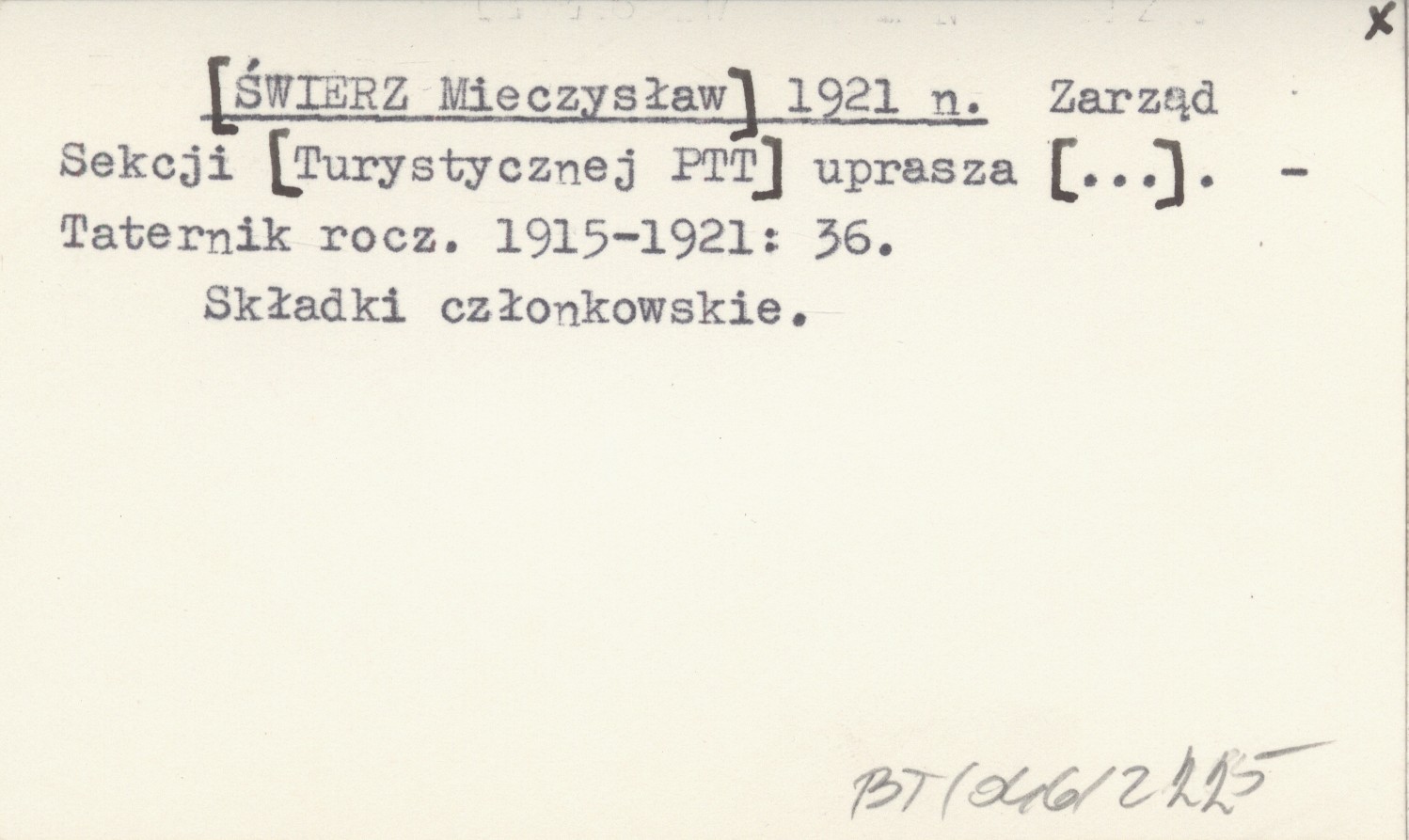 [ŚWIERZ Mieczysław] 1921 n Zarząd Sekcji [Turystycznej PTT] uprasza [...].