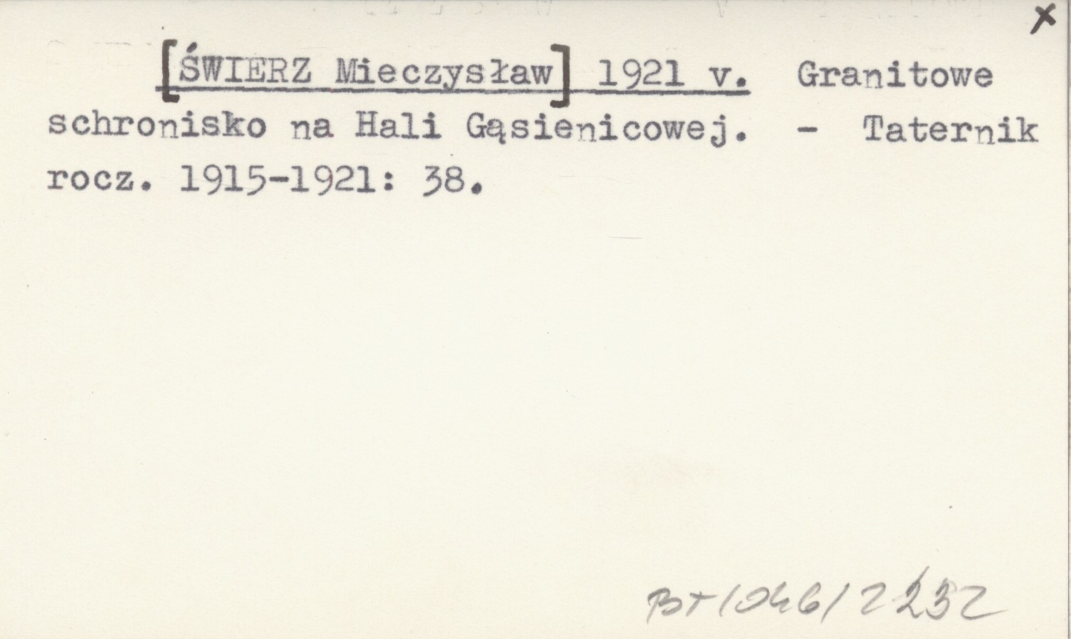 [ŚWIERZ Mieczysław] 1921 v Granitowe schronisko na Hali Gąsienicowej.
