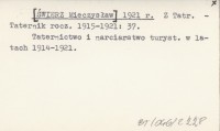 [ŚWIERZ Mieczysław] 1921 o Zarząd Sekcji poleca wydawnictwa Sekcji Turystycznej [...].